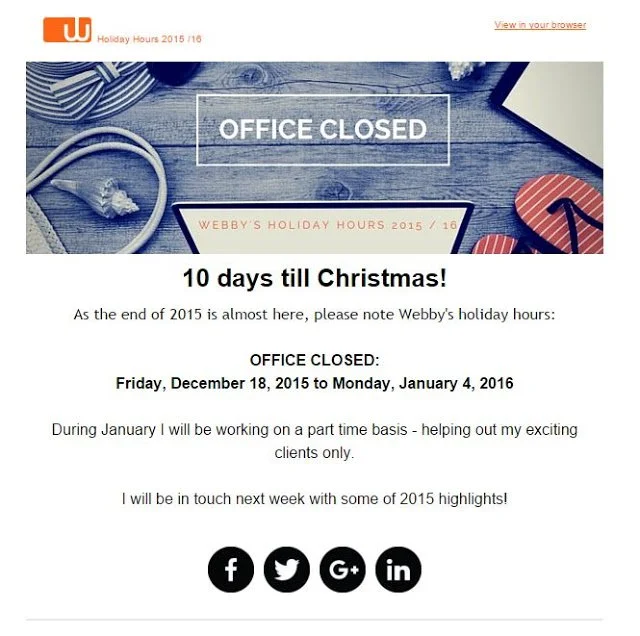 If you do not sell a product send an EDM to your client base towards the end of December thanking them to their support and advising them with your holiday hours.