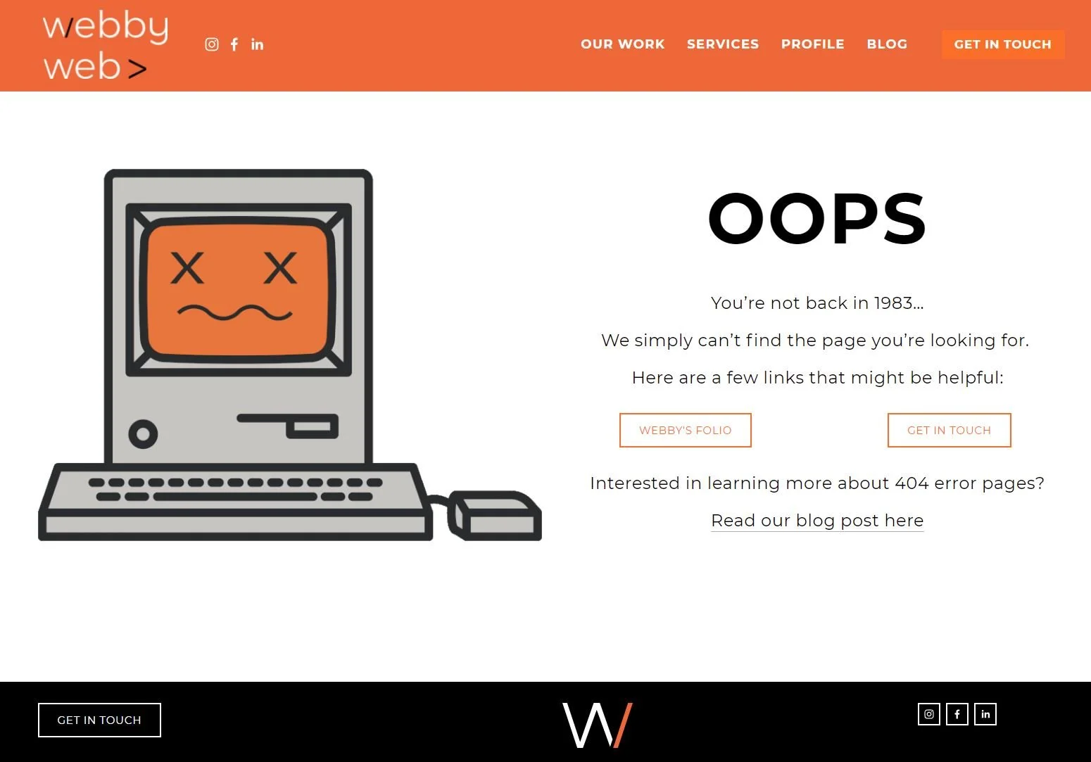 Language – a basic 404 page is very technical and most visitors will not understand and only see ‘error’ – tell them in plain Lagrange what happened.