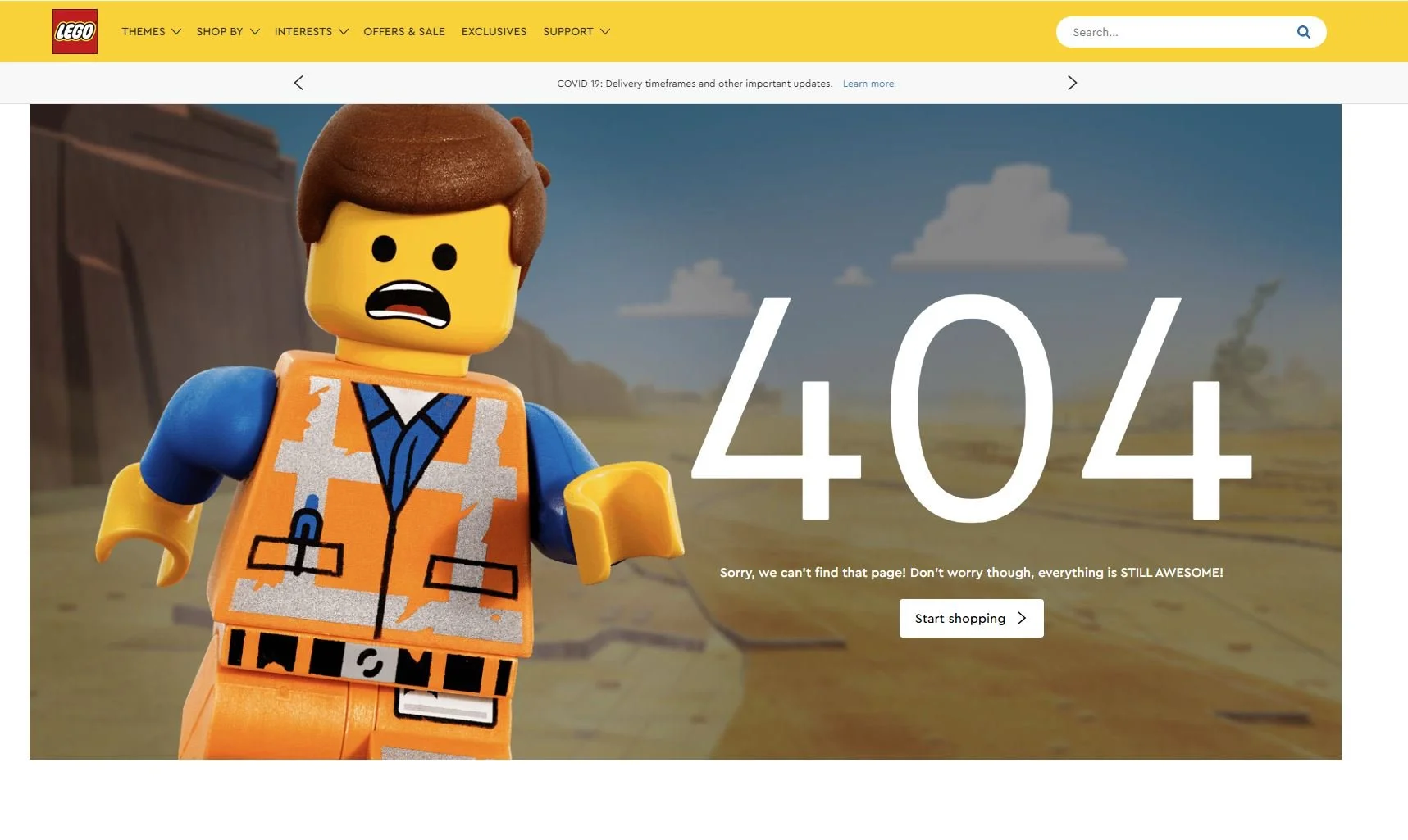 Lego 404 Error page: Using product image and reference to the Lego Movie ‘everything is awesome’ - link to shop.