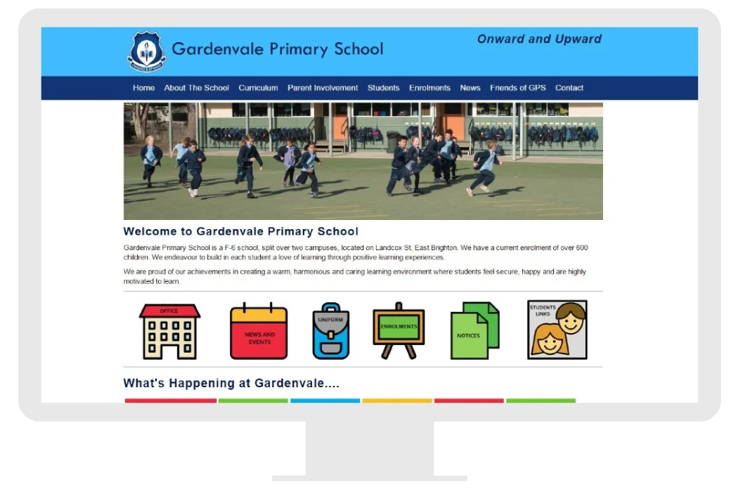The website (developed in 2012) is a gateway fro parents for information, news, events, uniform and links for students. There are graphic links on the home page that are designed with children in mind and are very noticeable and easy to find. Each year level also has a blog news page which is also very visible on the home page.