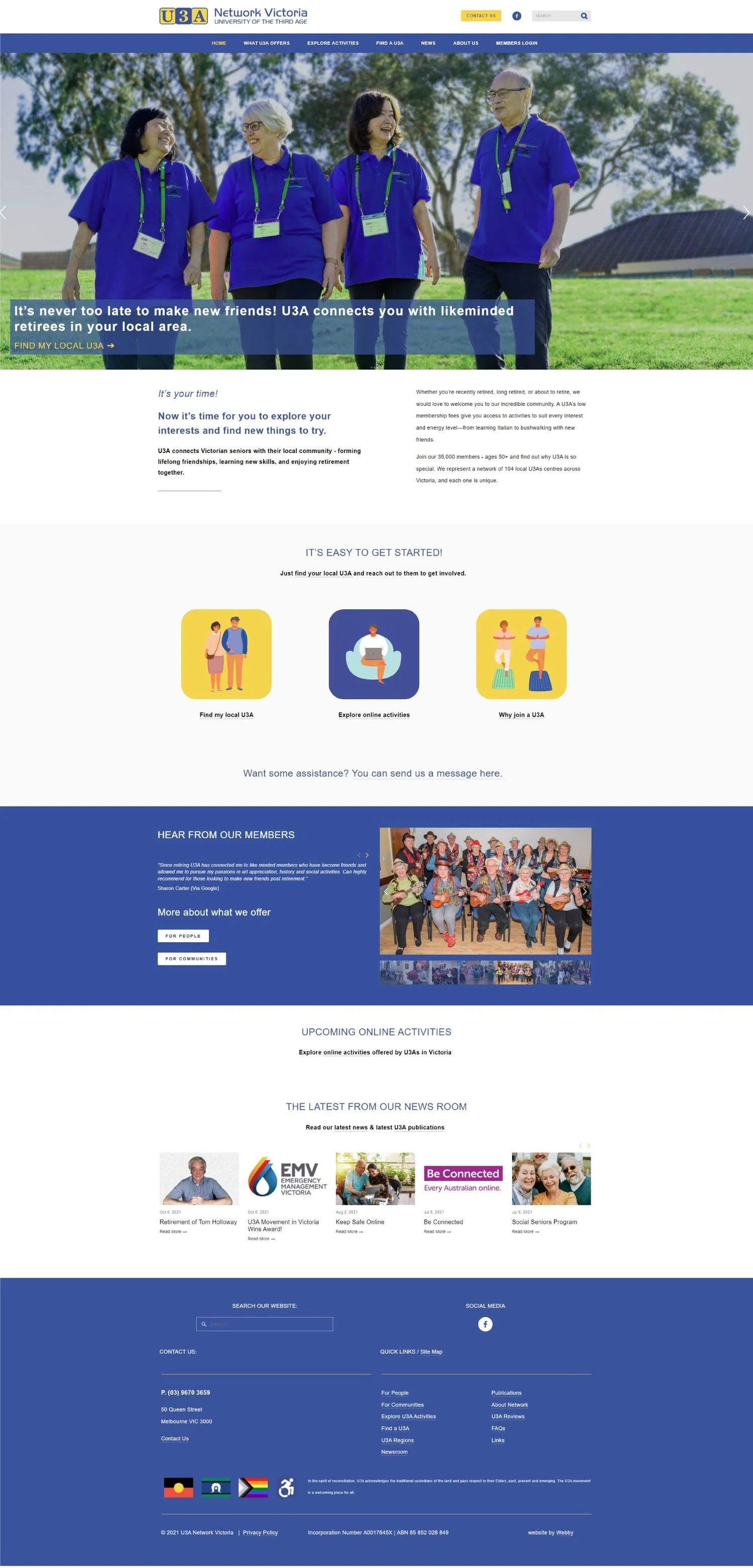 U3A Network Victoria (University of The Third Age) is the Victorian network body that looks after over 100 U3A branches across the state.
